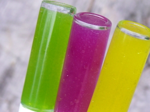 Aus einem alkoholischen Frischpflazenauszug können wunderbar bunte Gele hergestellt werden. Der Auszug der Nanaminze färbt besonders schön grün.
